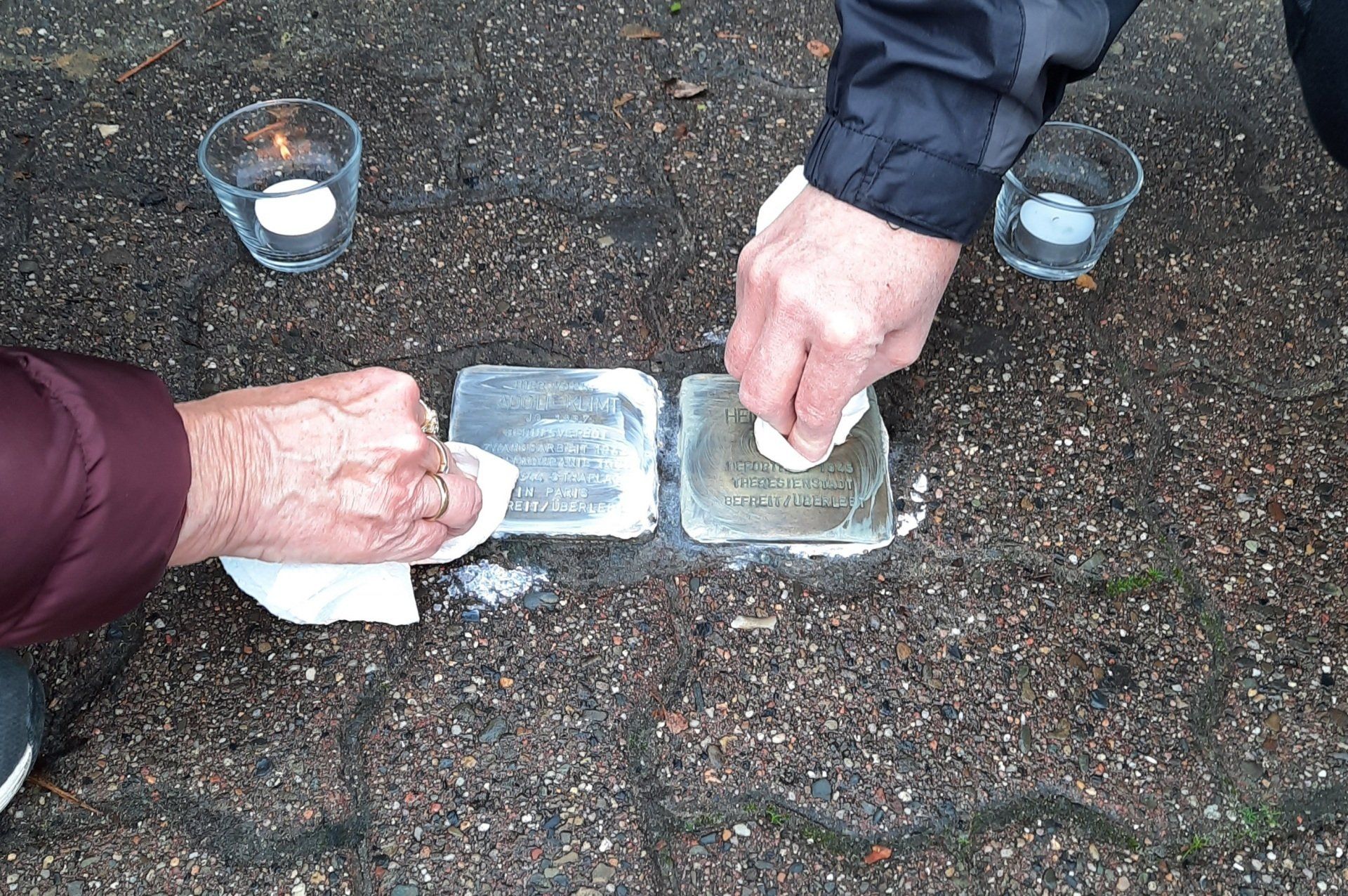 Regelmäßig geputzt werden die beiden Stolpersteine seit dem 9. November 2018 – zunächst von einem Mitglied unseres Teams in Eigeninitiative, seit Januar 2020 von den Mitgliedern des neu gegründeten Arbeitskreises. Jeweils am 27. Januar, 8. Mai und 9. November findet die Putzaktion statt, verbunden mit einem meist stillen Gedenken bzw. dem Vortragen eines kleinen Textes.